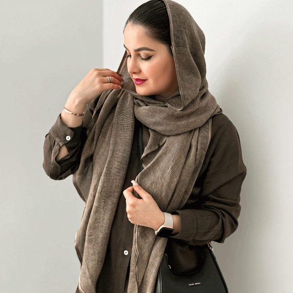 خرید اینترنتی شال زنانه کرم تیره | شال شیک و گرم با جلوه‌ای خاص